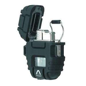 Windmill Delta Stormproof Lighter Description : By adding a tough elastomer armor, Windmill's Delta Stormproof lighter has the qualities you would expect plus incredible impact resistance. Delta features a stainless steel wire closure to stay watertight even if dropped. Weight 2 oz - Fuel capacity 1 gram - small & compact size - 2.6" x 2" x .9"